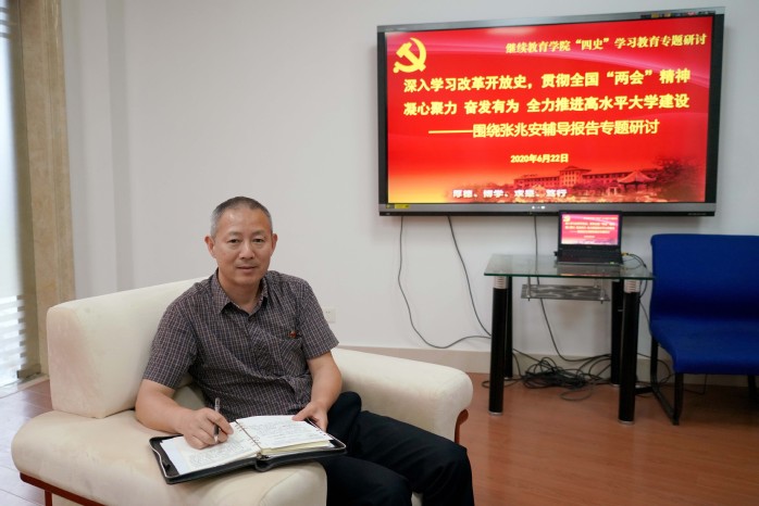 6月22日下午,继续教育学院开展“四史”学习教育专题研讨,学院领导班子认真听取全国人大代表、上海社会科学院副院长、民建上海市委员会副主任委员张兆安研究员的专题报告,贯彻全国两会精神,深入学习改革开放史,推进高水平大学建设。 张兆安作为全国两会的亲历者、参与者,分享参加十三届全国人大三次会议的经历和学习习近平总书记重要讲话的体会。他分享十三届全国人大三次会议期间总书记三次重要讲话精神,总书记以人民为中心的情怀打动与会者和全国人民,总书记指出要“坚持人民至上,紧紧依靠人民,不断造福人民,牢牢植根人民”。在疫情防控的特殊时期,全国人大会议聚焦民生福祉,通过民法典和涉港决定,充分体现了党的立法智慧和政治智慧,彰显了维护祖国统一和实现中华民族伟大复兴的决心。