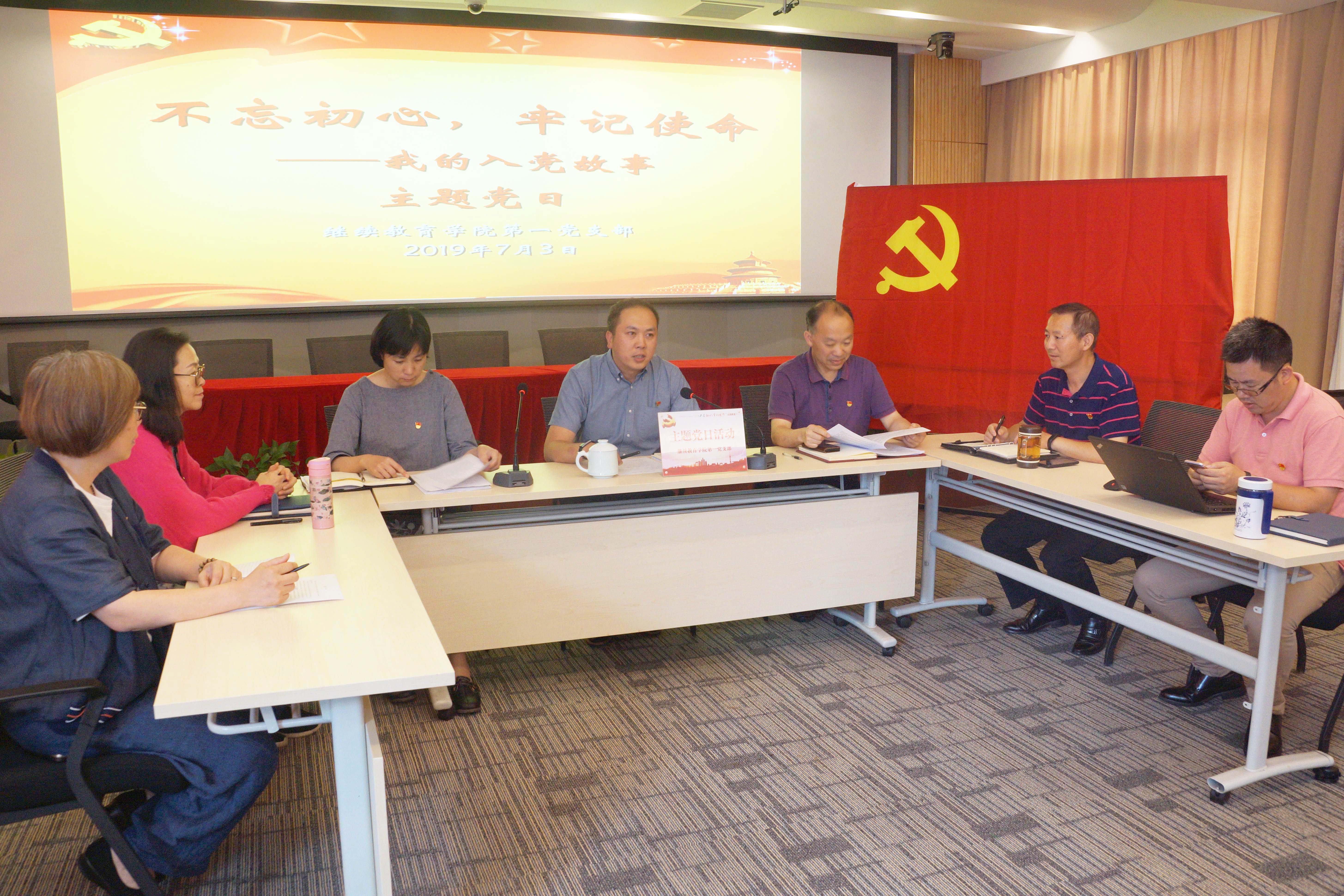 支部党员王立娇同志回忆道,父母都是为党的事业工作几十年的老同志,父母对自己的成长起到很大的作用,对党的最初认识源自父母。工作后,得到身边党员的帮助和支持,也是在身边党员的指引下坚定了入党信念。她说,“不忘初心”就是不忘自己的入党动机,在实践中不断进化入党动机;“牢记使命”就是时刻与人民群众紧密相连。 支部党员俞伟东同志和大家分享了自己的入党故事,谈到自己在工作中如何把个人成长与学校发展紧密结合,在党组织的培养下,从一名普通的辅导员、专业教师,成长为一名党的干部。不管是在哪个岗位上,始终牢记党的宗旨,不忘初心,以高度的责任心、使命感完成党交付的任务,始终把群众的需求放在心上,始终把“做好每一份工作”牢记心间。习近平总书记曾经说过,“我将无我,不负人民”。在“不忘初心、牢记使命”主题教育中,牢牢把握守初心、担使命,找差距、抓落实,先学一步、学深一点,先改起来、改实一点。作为一名党员,要永远牢记中国共产党人的初心和使命,为中国人民谋幸福,为中华民族谋复兴。 支部其他党员也分享了自己的入党故事、成长历程,整个分享活动整整持续了近两个小时。党员们纷纷表示,这次主题党日活动特别有意义,让自己再次重温了入党时的理想信念,更加坚定了在将来的岁月更好地践行“全心全意为人民服务”的宗旨,更好地为学校和学院发展做出更大的贡献。