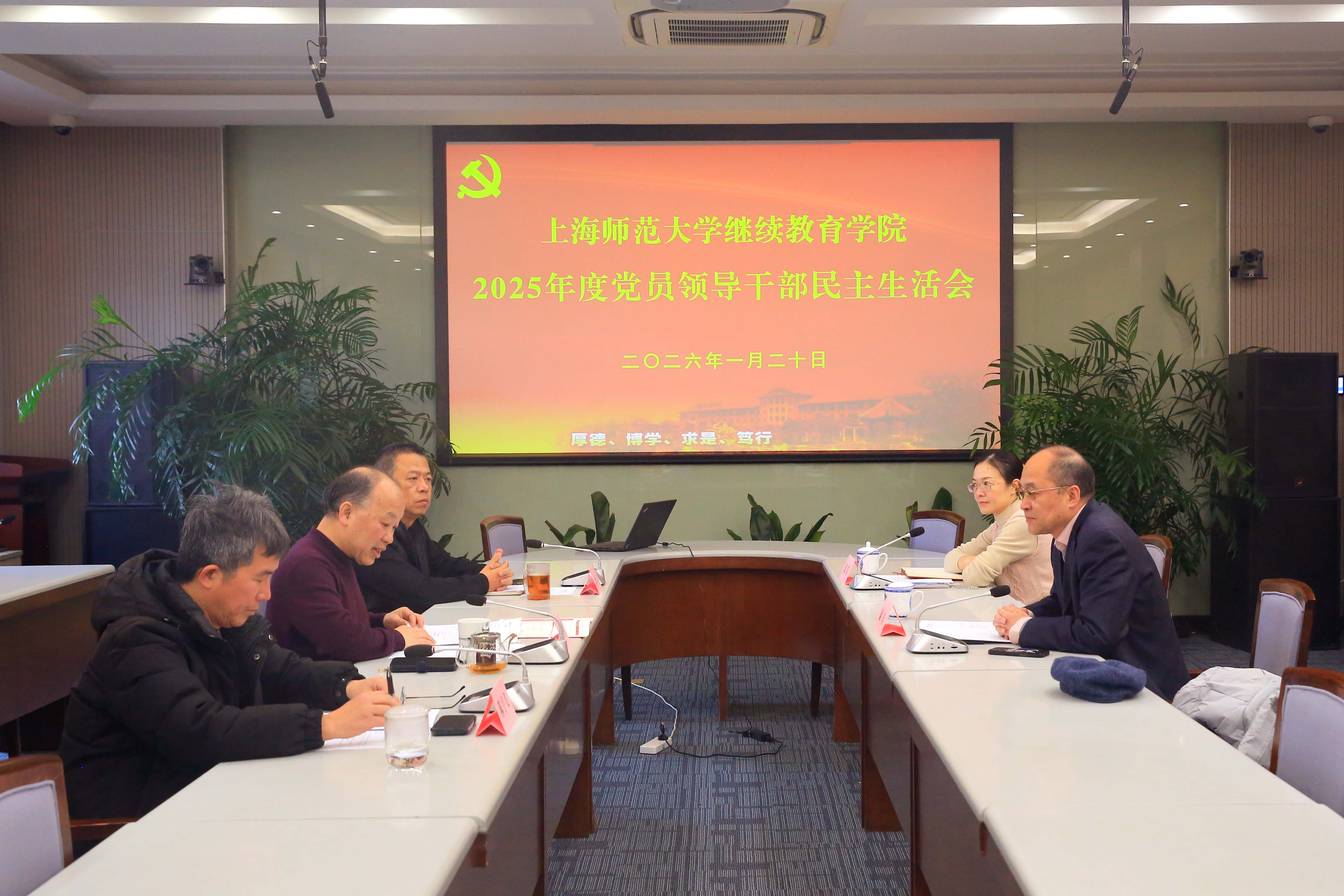 1月20日,继续教育学院2025年度党员领导干部民主生活会在学院301会议室进行,分管和联系校领导康年、督导组成员夏洁及学院全体领导干部出席了会议,会议由学院党总支书记俞伟东主持。