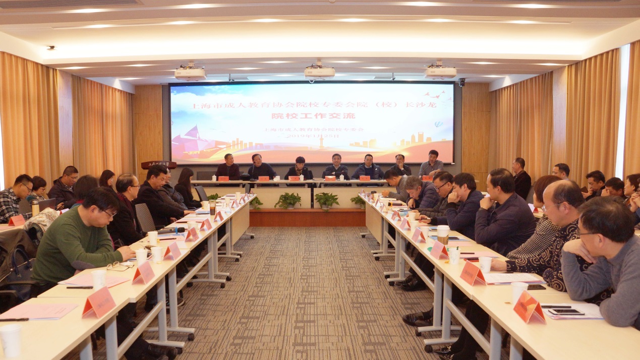 1月25日下午,上海市成人教育协会院校专委会在我校继续教育学院召开全市高校继续教育学院院长和业余大学校长等负责人参加的院(校)长沙龙,回顾总结2018年市成协院校专委会继续教育工作,各会员单位一起交流畅谈,分享经验,展望新一年愿景。市成协院校专委会主任陈巍主持会议,上海市教委终身教育处陶文捷处长、夏瑛副处长、孙桂芳副处长,高教处赵坚副处长,市成协邹益副会长等领导参加沙龙活动。