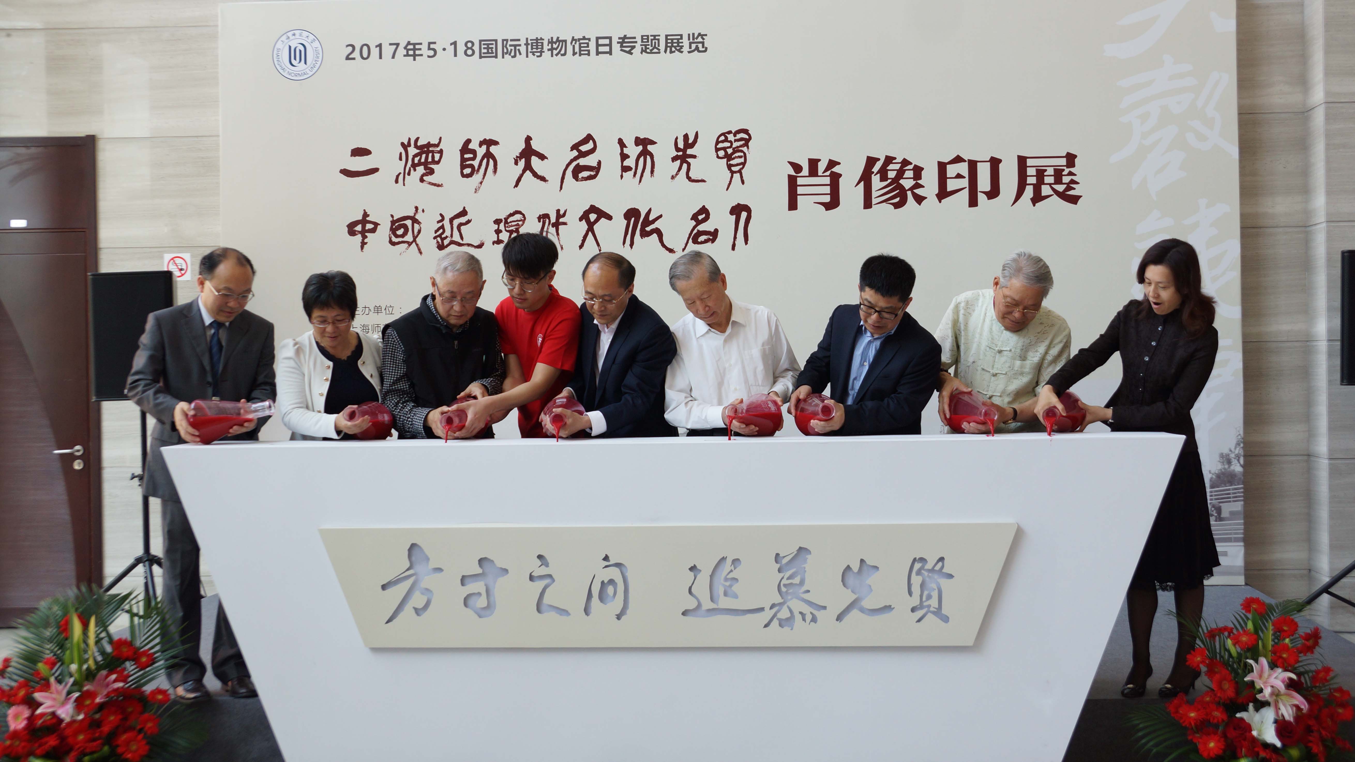 2017年5月16日下午,《上海师大名师先贤•中国近现代文化名人肖像印展》在学校东部艺苑楼一楼展厅开幕。展览由校档案馆 博物馆 校史馆和继续教育学院联合主办,展出继续教育美术学(中国书画)专业学生彭大磬(大庆)创作的我校名师先贤和中国近现代文化名人肖像印作品共五十五方,用富有汉画像石效果的肖像印创造性地再现名师先贤、文化英杰的特征、形象和神韵,极富艺术感染力。康年副校长致辞,刘晓敏副校长代表学校接受彭大磬捐赠十六方名师先贤印章。康校长在致辞中指出:举办这次展览正是高校践行“注重文化浸润、感染、熏陶,要用文化滋养心灵、用文化涵育德行、用文化引领风尚”的体现。长期以来,上海师范大学扎实推进校园文化建设,努力打造价值主导、文化品牌、自主创新的文化育人平台,充分发挥博物馆、档案馆、校史馆等场馆的育人功能。
