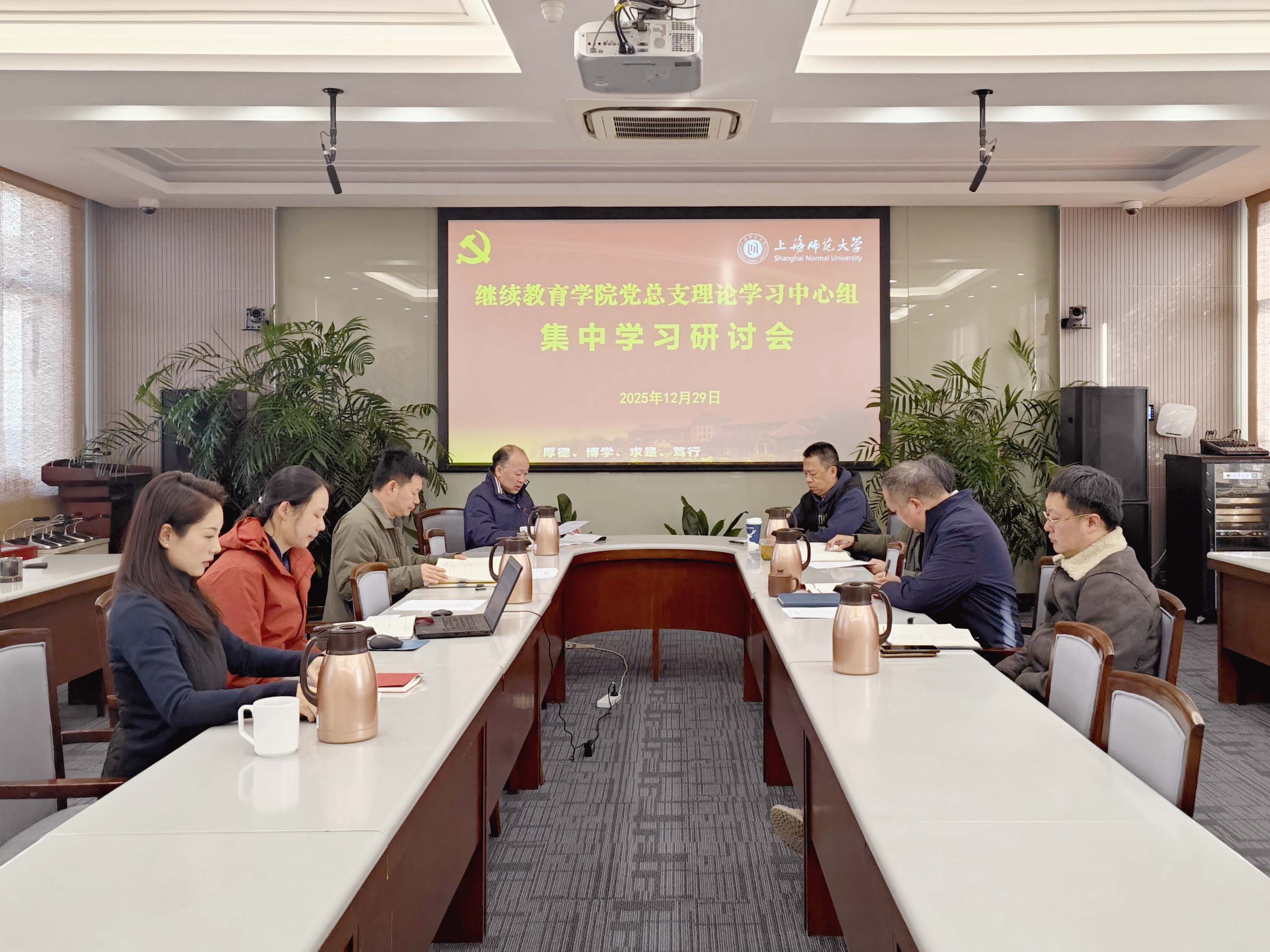 12月29日,继续教育学院在301会议室召开了党总支理论学习中心组会议,会议由学院党总支书记俞伟东主持,徐丰、陈宇飞、左本荣、王明顺等班子成员出席了此次会议。