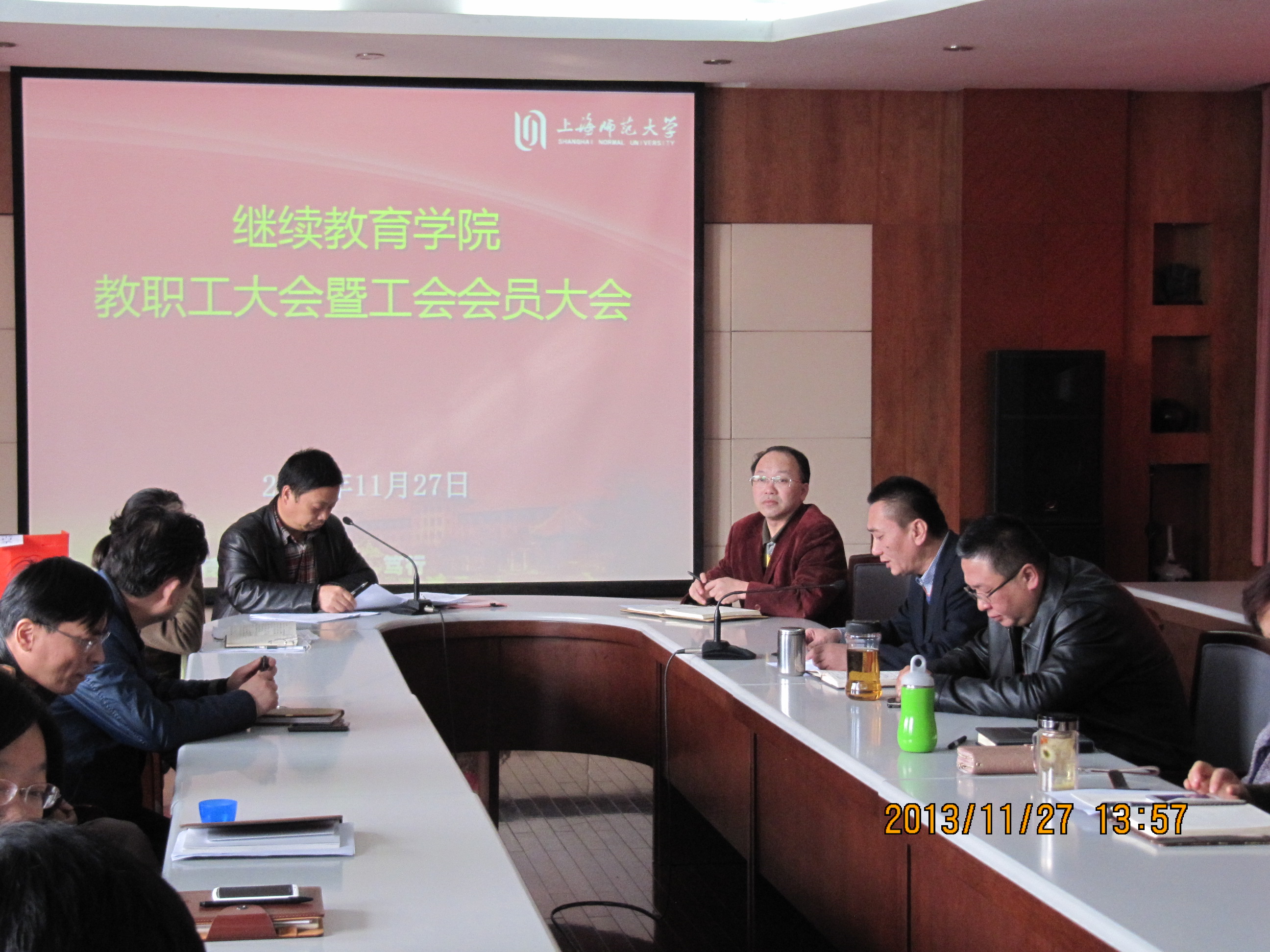 11月27日下午,我院教职工大会暨工会会员大会在继续教育学院301会议室召开。会议由党总支书记樊连生主持,继续教育学院全体教职工参加了会议。