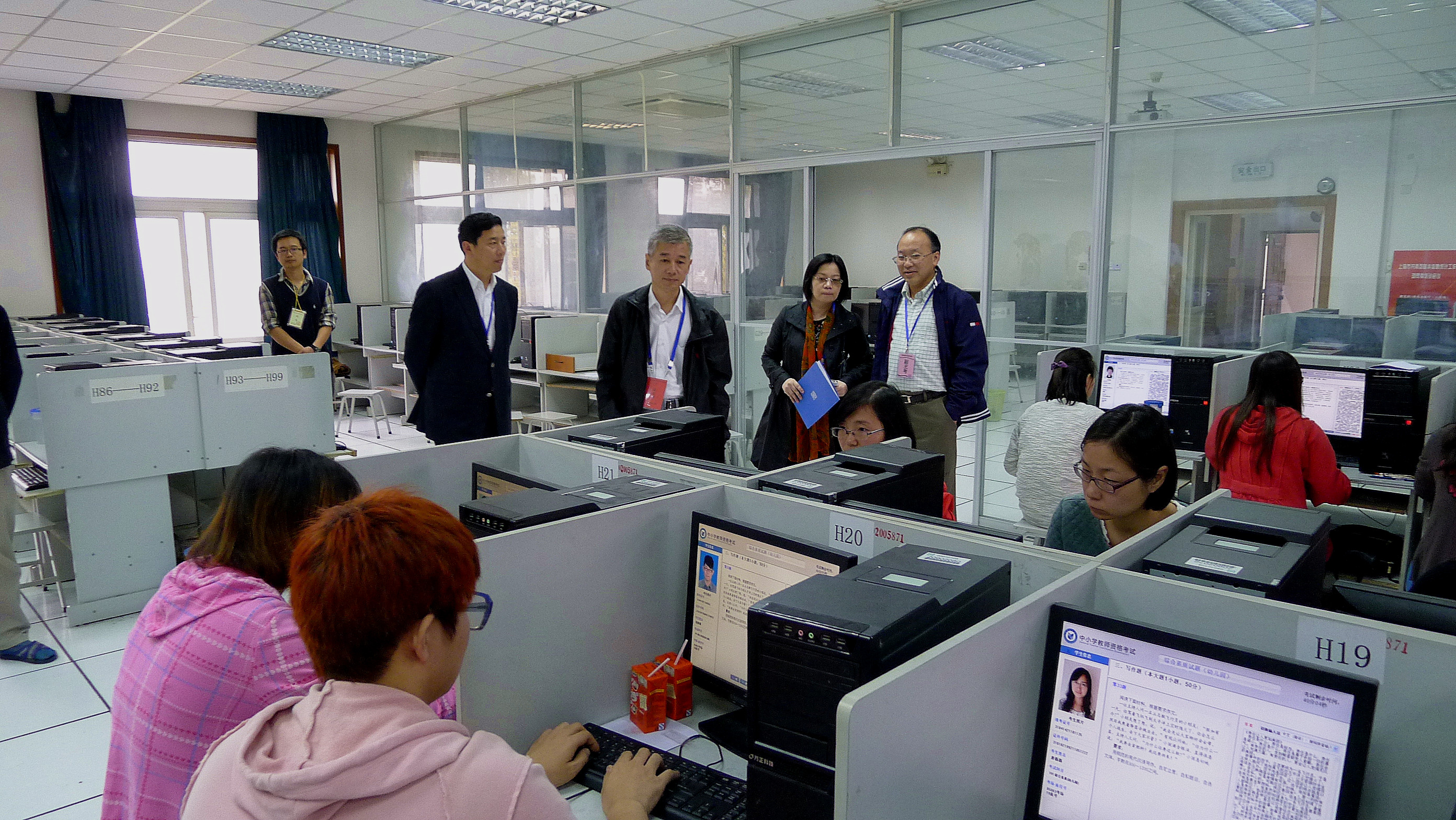 我校自8月起接受5000多学生网上报名、现场确认;10月起筹备考试的考务工作。11月2日,徐汇校区一教、三教和奉贤校区五教3个考点、10个机房、141个考场顺利开考。300多名考务人员有序工作,近5000位考生完成了多层次多学科的教师资格证考试。